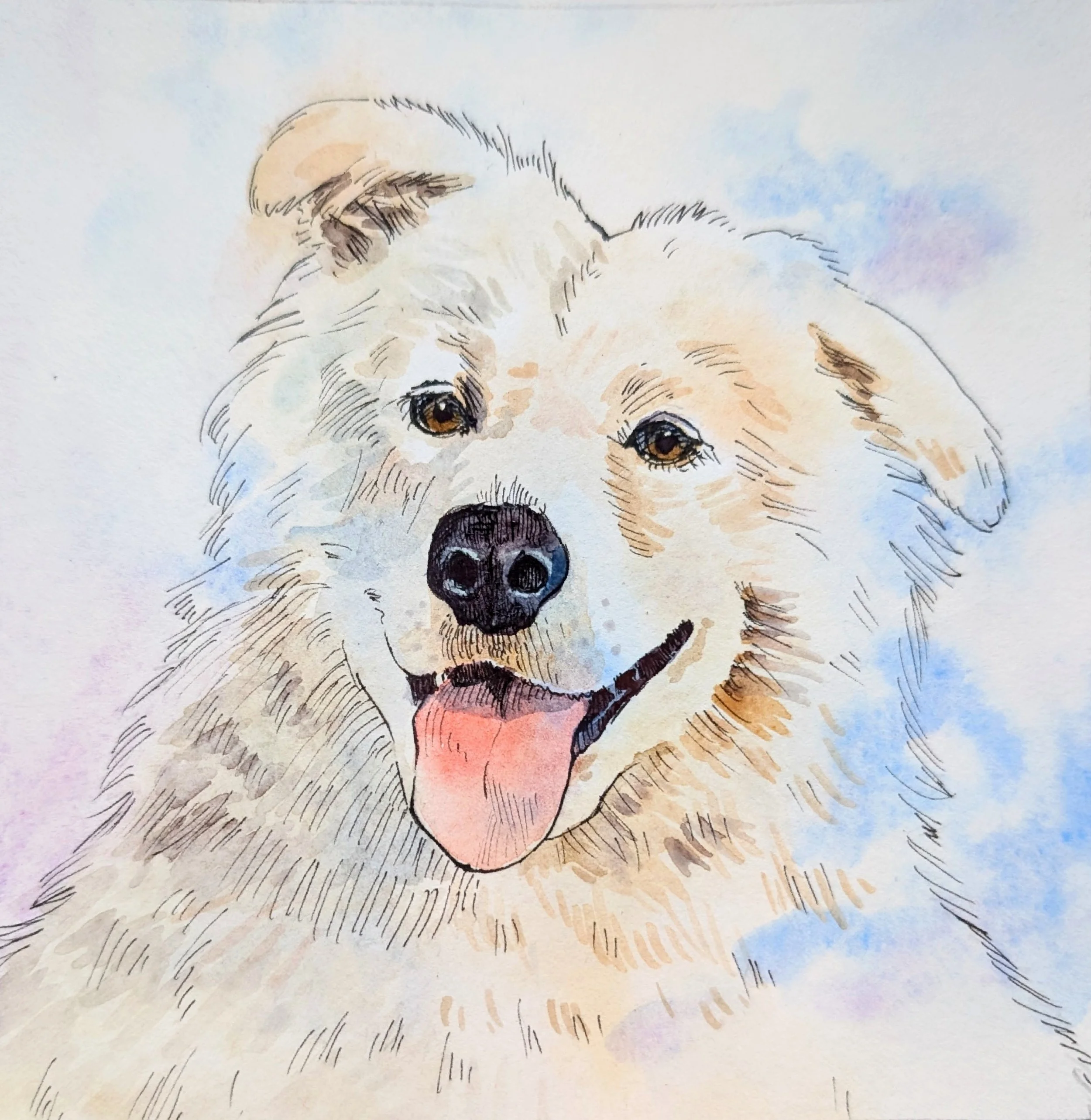 “Marina's work exceeded my expectations! She created a painting of a friend's dog for his wedding from a photo adjusting the lighting and background as needed. The final piece was stellar! I can't wait to commission another piece from her for my own place!”